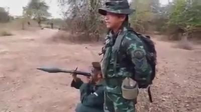 This is the moment a hopeless ISIS militant's attempt to shoot an RPG through a small hole in a wall