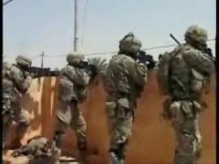 Soldiers take cover on a rooftop and exchange fire with insurgents. April 25, 2007.