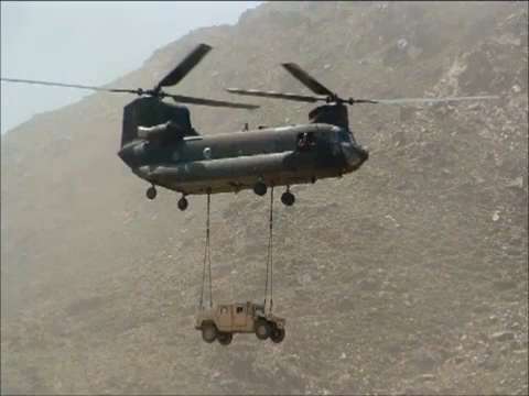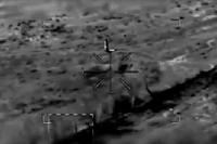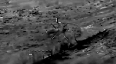 B-roll of aerial gun tape vehicle engagement. Scenes include Apache helicopter identifying and engaging vehicles with hellfire missiles and 30mm