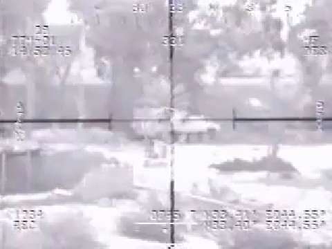 FLIR footage showing US Apache helicopters engage snipers with 30 mm guns as they're taking mortar fire from the enemy.