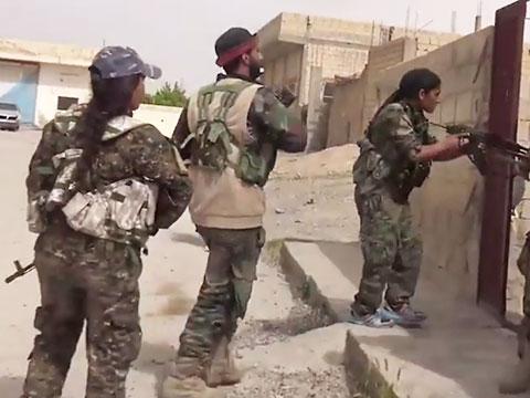 YPJ (Women's Protection Units) fighters on operation against ISIS gangs inside Tabqah town, southwest Raqqa.