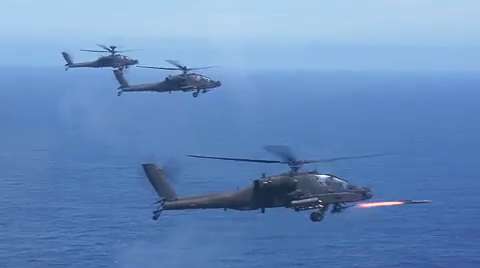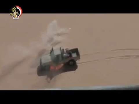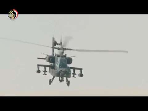 The Egyptian army launches attacks against terrorist strongholds in northern Sinai using Apache helicopters. FLIR footage starts around the 40
