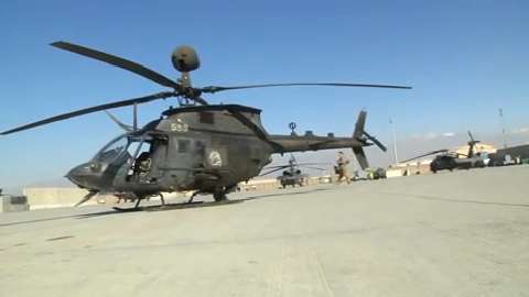 Five Kiowa Warrior helicopters flew for the final time, after years of combat service, because the air frame is transitioning