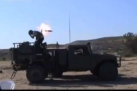 Wait, something doesn't seem right here. Get out!!! Two Spanish soldiers on a military vehicle called CARDOM shoot a mortar