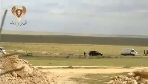 The FSA Ahrar Brigades Sham in Jericho ambush a Syrian Army truck with a double IED attack. Once the truck