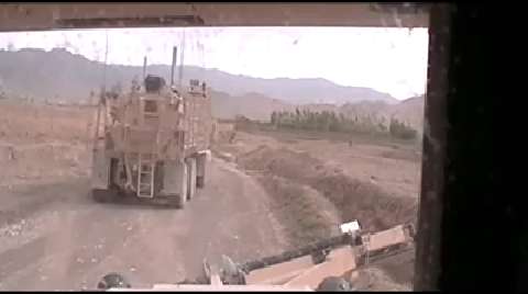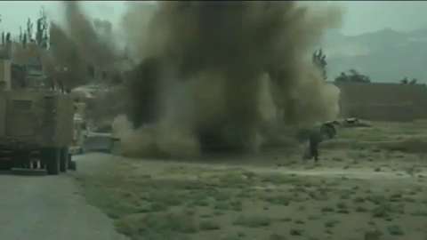 IED detonation, check out the boulders go hurling through the sky.