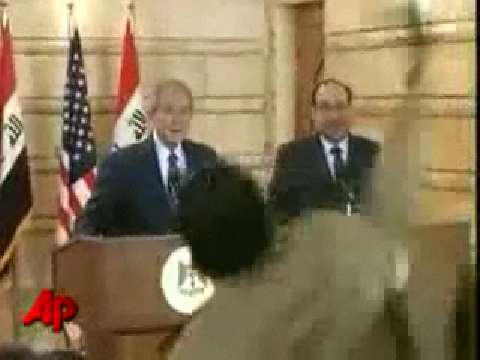 President Bush dodges two shoes thrown at him by an Iraqi Journalist. George has some cat like reflexes!
