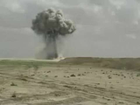 A group of soldiers detonate a weapons supply in Iraq from about a mile away. A bomb fragment from the