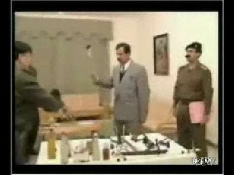 An old video of Saddam Hussein meeting with some of his top advisers discussing new military equipment. This has to