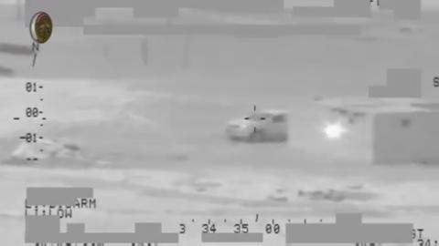 Iraqi airstrikes with precision guided weapons destroy moving ISIS vehicles and other targets.