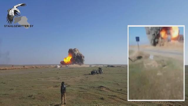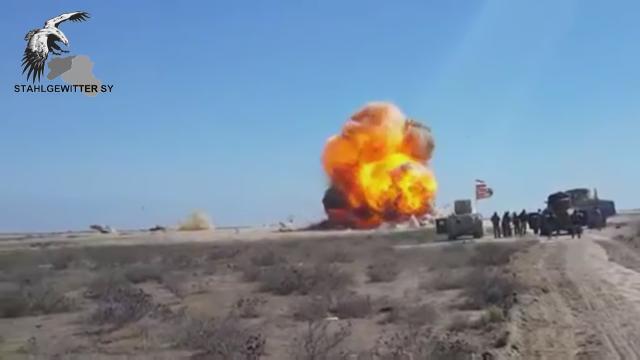 An Iraqi tank blows up an abandoned ISIS VBIED in Al Anbar Province, Iraq.