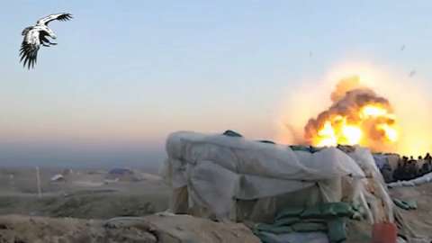 The destruction of an armored ISIS car bomb (bulldozer) is captured by video surveillance of Iraqi Special Forces while monitoring