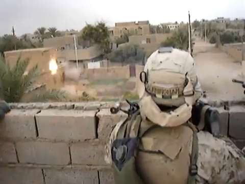 Great video of a Marine shooting an M203 grenade launcher at a insurgent in a building during OIF 3 in