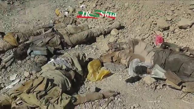 Iraqi Forces (Army and PMU) display ISIS casualties after the recapture of Fallujah.