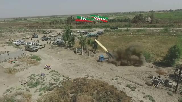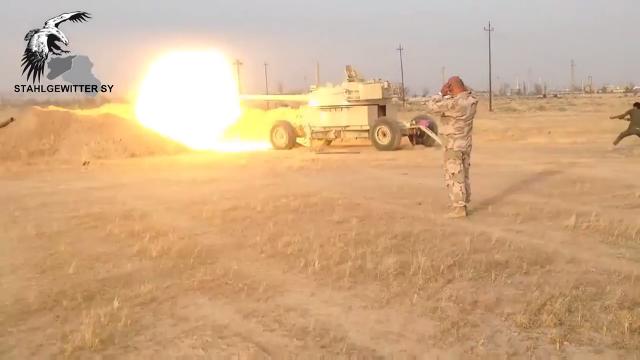 Iraqi Badr Forces use a turret as mobile artillery near Jabal Makhoul in Salah Ad-Din province.