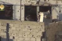 Islamic Front militants battle Syrian regime forces in Aleppo. The sniper is allegedly firing a 23mm explosive projectile, almost making