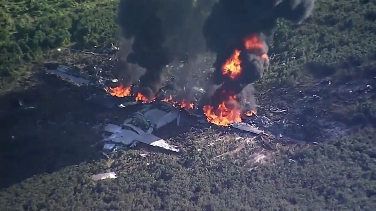 Video shows crash site after Marine Corps plane carrying 16 people crashes in Mississippi on July 10th, 2017.