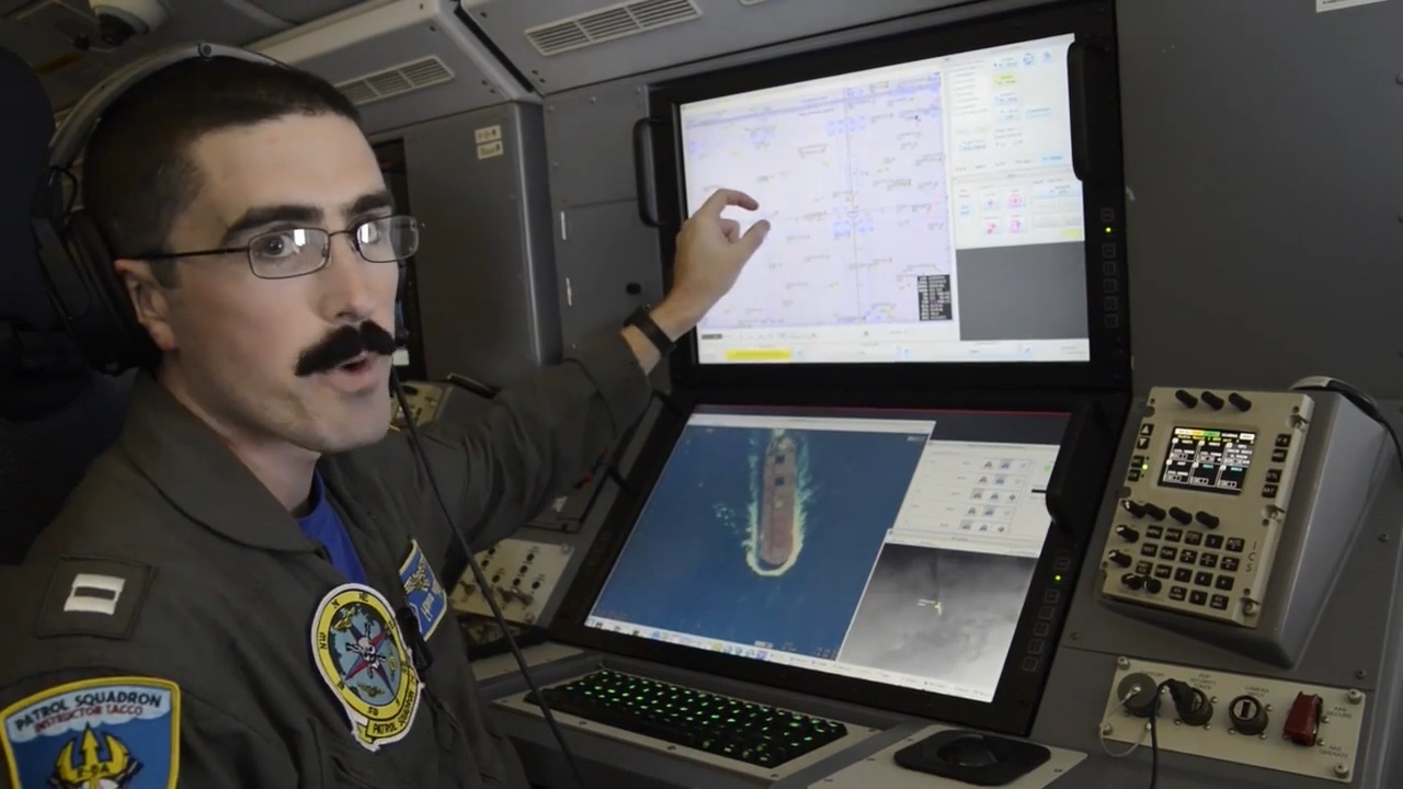 A P-8A Poseidon from Patrol Squadron (VP) 26 “The Tridents” flies over the South China Sea on a routine operational