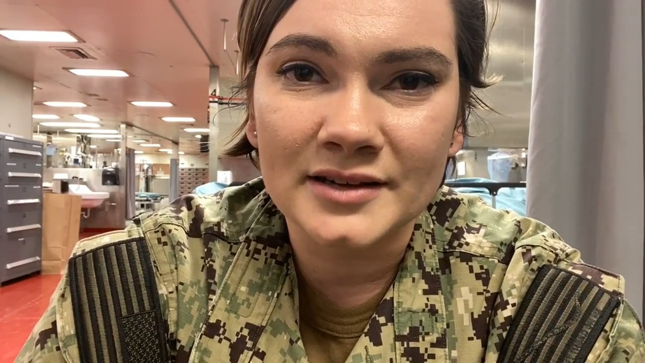 Hospitalman Corpsman 3rd Class Alexandria Agudelo checks in from aboard the Military Sealift Command hospital ship USNS Comfort (T-AH 20)