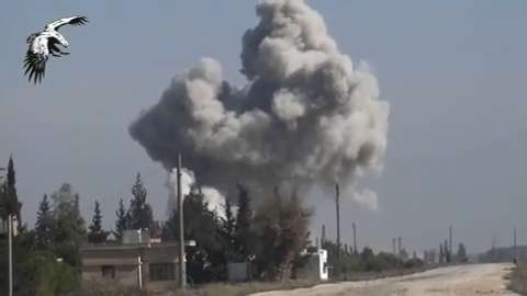 Footage from the ground shows Russian Jets bombing ISIS positions in Syria.