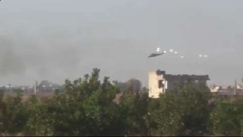 A Russian Sukhoi SU-34 jet allegedly strikes rebel targets over Idlib, Syria.