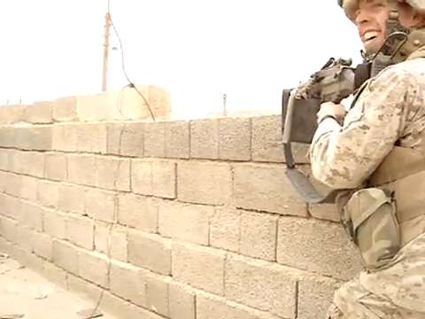 B-roll of Company B,1st Reconnaissance Battalion Marines suppressing enemy forces by fire and maneuver during a mission extract near Sangin
