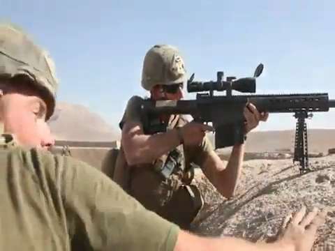 U.S. Marines with Company B., 1st Reconnaissance Battalion engage enemy forces from a patrol base near Sangin, Afghanistan, November 19