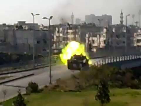 Free Syrian Army IED attack on a fast moving Syrian Army APC.