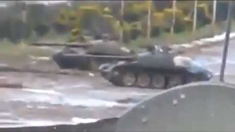 03/14/2012 -- A Syrian Army T-72 tank is hit by an IED planted by the Free Syrian Army (FSA or