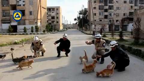 This is just awesome. Syrian civil defense members have been taking care of 75 stray cats in the largely abandoned