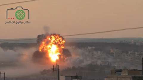 Syrian rebels use their infamous “Hell Canon” to launch a massive mortar round on a hotel holding regime soldiers in