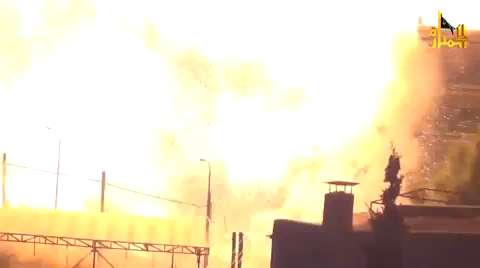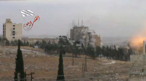Syrian rebels unleash a huge bomb using a TNT laden BMP (on a regime base that was formerly a hospital)