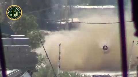 A Syrian regime tank fires a shell directly at the camera in Jobar, Damascus. Check out the clear view of