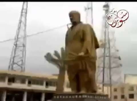 Syrian rebels bring an Assad regime statue down with some rope and a truck. The face plant is a nice