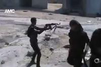 SAA T-80 tank engages Syrian rebel attempting to fire an RPG. Skip to the 40 second mark.