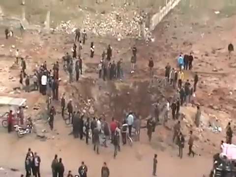 This is allegedly a crater left by a SCUD missile in Hananno, Aleppo City, Syria.