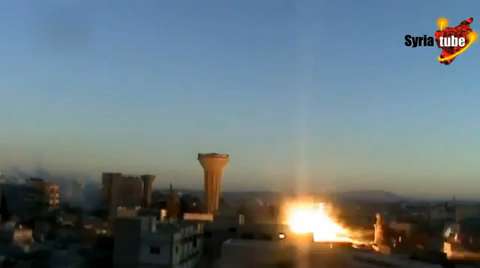 Footage has emerged showing more rocket attacks on Aleppo, Syria. Skip to the end for the action. 01/21/2013.
