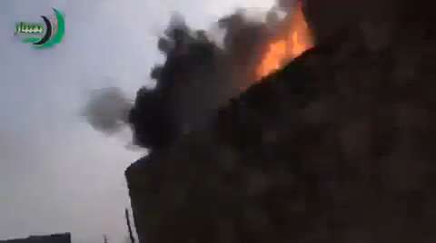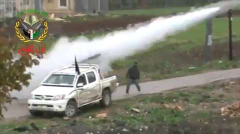 Source: Conquest Brigade bombing Braszma with rockets from the besieged airport Meng in Aleppo, Syria. 11/12/2012.