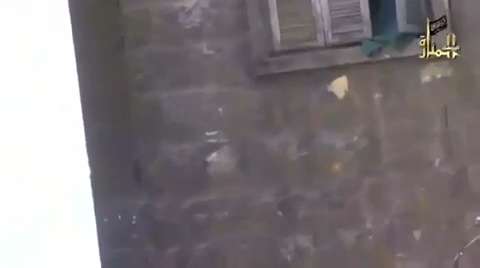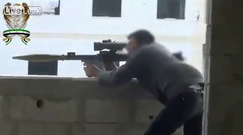 Syria - A sniper is opening a hole in the wall, the other side responds with an RPG.