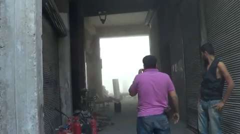 FSA fighters almost gets hit by an incoming round from the Syrian Army.
