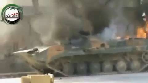 Syrian rebels attack a Syrian Army BMP with an IED.