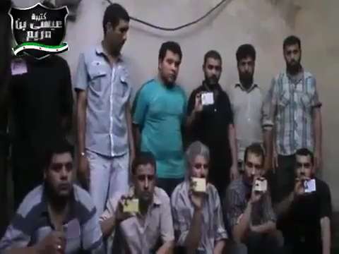 Rebels show captured Syrian army officers captured in recent operations. 6-21-12.