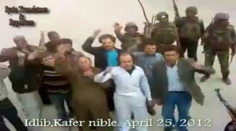 April 25th, 2012 - Syrian Army soldiers force civilians to support their dictator Assad by having them chant propaganda at