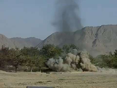 Taliban firing a .50 cal DShK (DISHKA) at American Position in Afghanistan -- Source: 3D IBCT, 1st AD, CCOP Kherwar