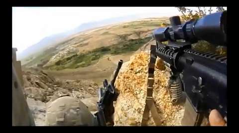 Helmet cam shows suppressing fire during a firefight in Afghanistan.
