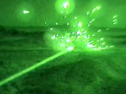 NVG view of a gunship engaging Taliban fighters in Afghanistan.