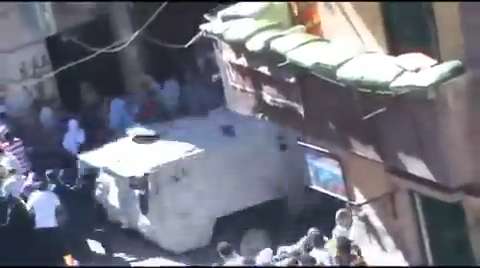 An Egyptian Army combat vehicle runs right over anti-coup protesters. 10/11/2013.