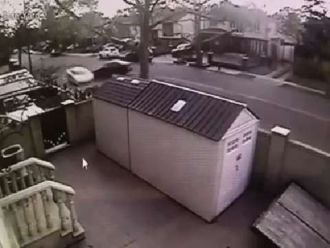 A security video of a harrowing Brooklyn crash that ended with a $400,000 Lamborghini Aventador slamming into a tree and